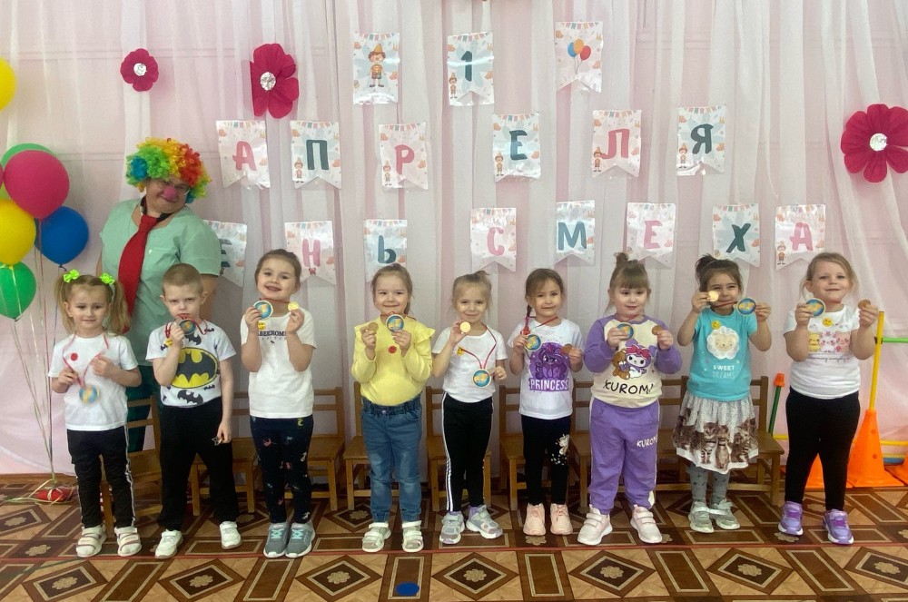 Весёлый праздник День смеха состоялся в средней группе Радуга 1 апреля. В программе были необычные эстафеты с клоуном и воздушными шарами, игры, награждение медалями и сладкими призами и, конечно же, весёлый смех, улыбки и шутки!