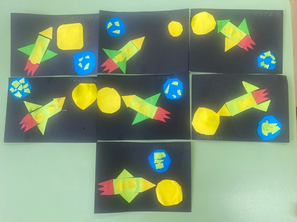 Знания, полученные на занятиях, дети закрепили в своих творческих работах и рисунках. В группах были оформлены выставки детских работ, посвященные Дню космонавтики.