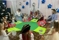В гости к ребятам пришли Зимушка-Зима, пиратка Лора, и, конечно же, Дед Мороз! Захватывающее новогоднее приключение со сказочными героями очень понравилось детям. Ребята приняли участие в видео-разминке и космической видео-игре «Бегалки», играли со снежками, исполнили новогодний игротанец, победили пиратку в игре "Моталочка". В завершении праздника дети исполнили веселые танцы вместе с Дедом Морозом и получили долгожданные подарки, которые им выдал волшебный чудо-аппарат!!!