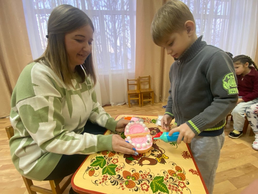 На занятии ребята не только узнали много полезной информации о гигиене, но и попробовали на практике приёмы ухода за зубами, и даже побывали в роли стоматологов, чей профессиональный праздник отмечается 9 февраля. Также ребят познакомили с художественной литературой по теме занятия.